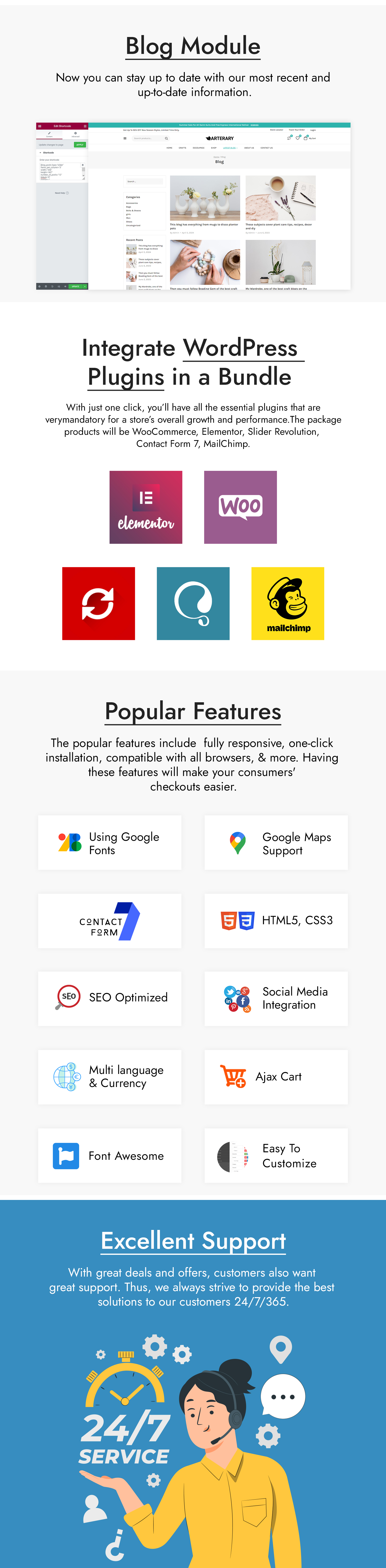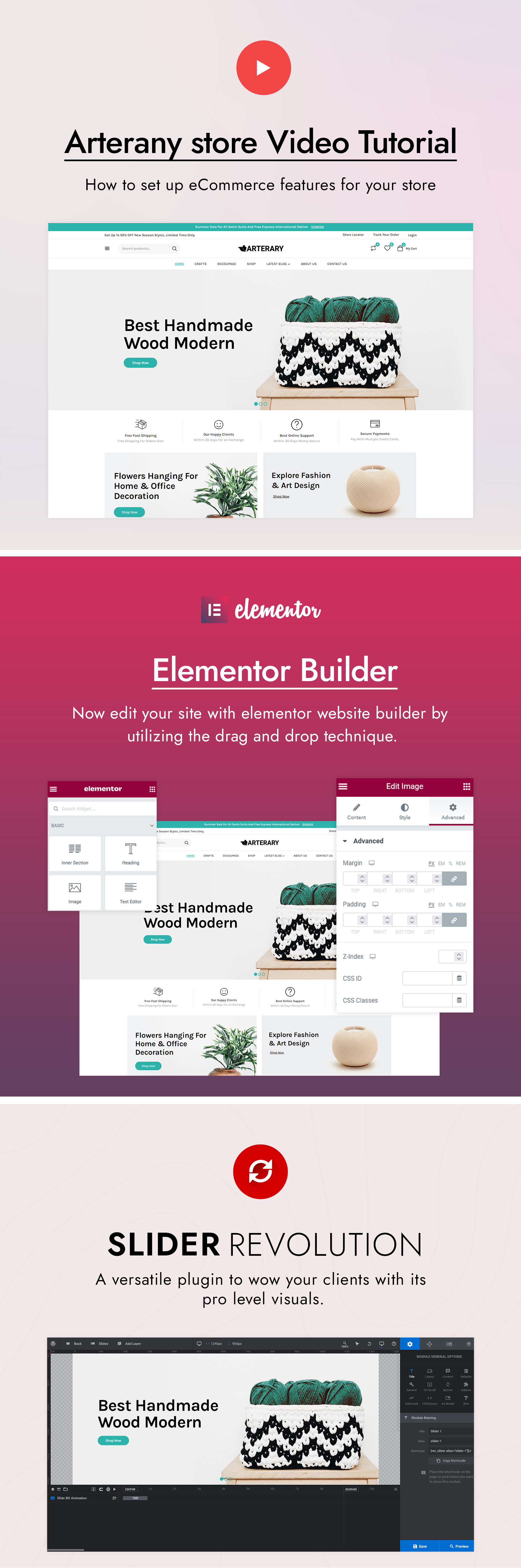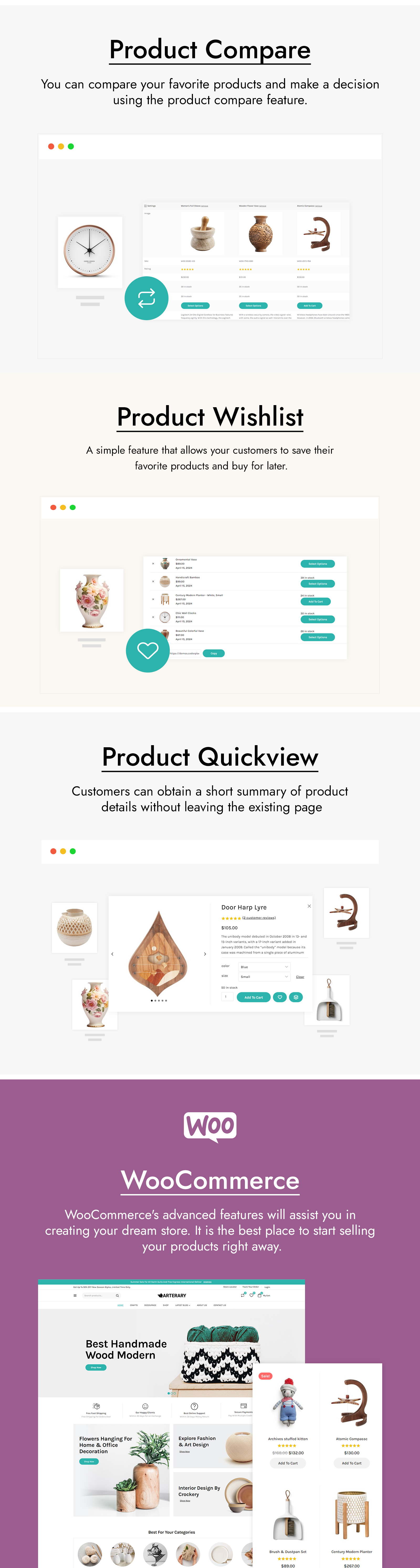 Use our beautiful Arterary WooCommerce Theme to transform your handcrafted goods, ceramic artist business, and home décor. Designed specifically for craftsmen, this theme raises your online presence by ingeniously fusing creativity and usefulness. Displaying your one-of-a-kind works, from exquisite pottery to handmade dcor, is effortless with its elegant style and user-friendly features. With capabilities for order processing, inventory management, and more, WooCommerce makes managing your store easy. There are lots of customization possibilities that make it simple to express your creative vision. With responsive design, your consumers can purchase with ease on any device and have a flawless experience. Take advantage of our Arterary – Home Decor, Handicraft, and Ceramic Artist WooCommerce Theme to enhance your online artisanal business and stimulate creativity!