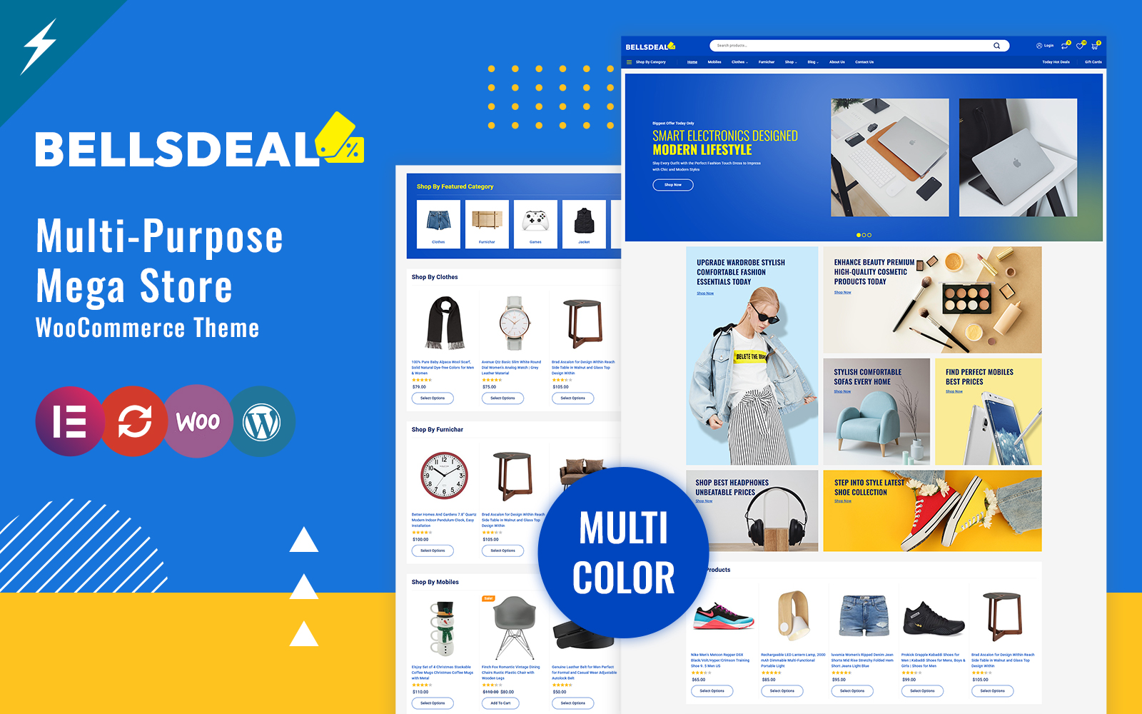 Bellsdeal: A Contemporary Multifunctional Megastore Fashion, electronics, furniture, food, and more can all be sold with the flexible and full of functions WooCommerce theme. With its clean, contemporary, and completely responsive layout, it ensures an effortless buying procedure on all platforms. With its secure checkout, advanced filtering, quick product previews, and WooCommerce equality, it boosts user engagement and revenue. The theme is SEO-optimized, displays quickly and is entirely adaptable using Elementor’s intuitive drag-and-drop builder. Bellsdeal theme is the best option for developing a shiny, high-performing megastore that offers flawless operation and breathtaking beauty because of its multilingual support, easy navigation, and social network integration.