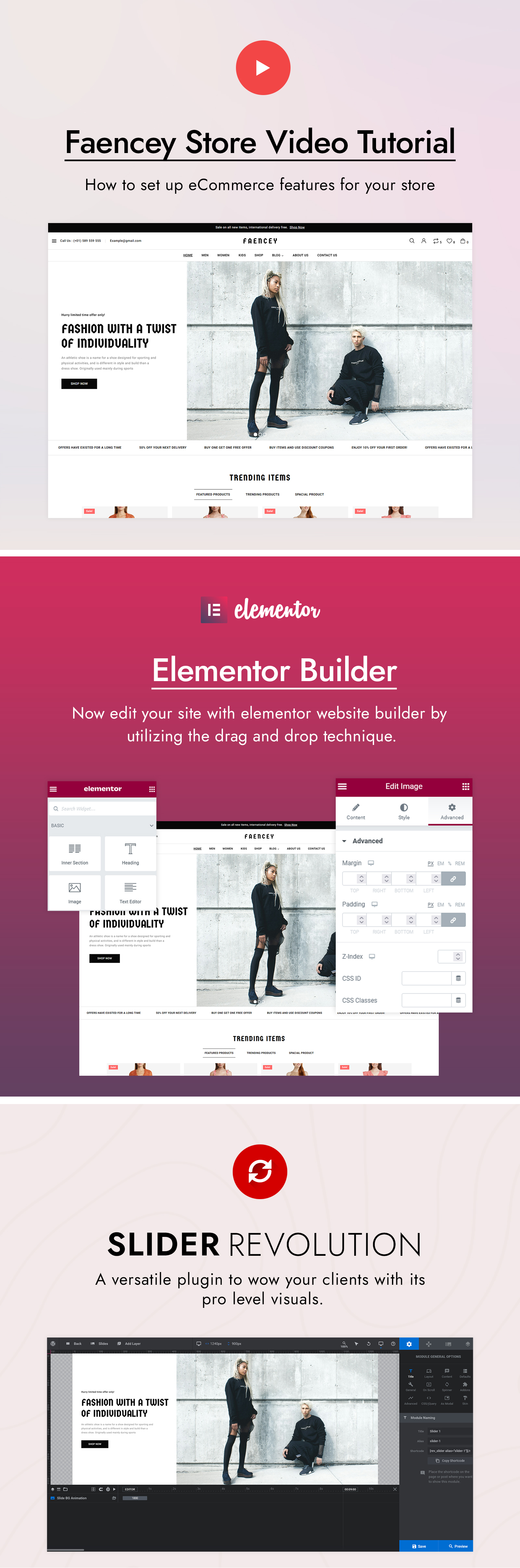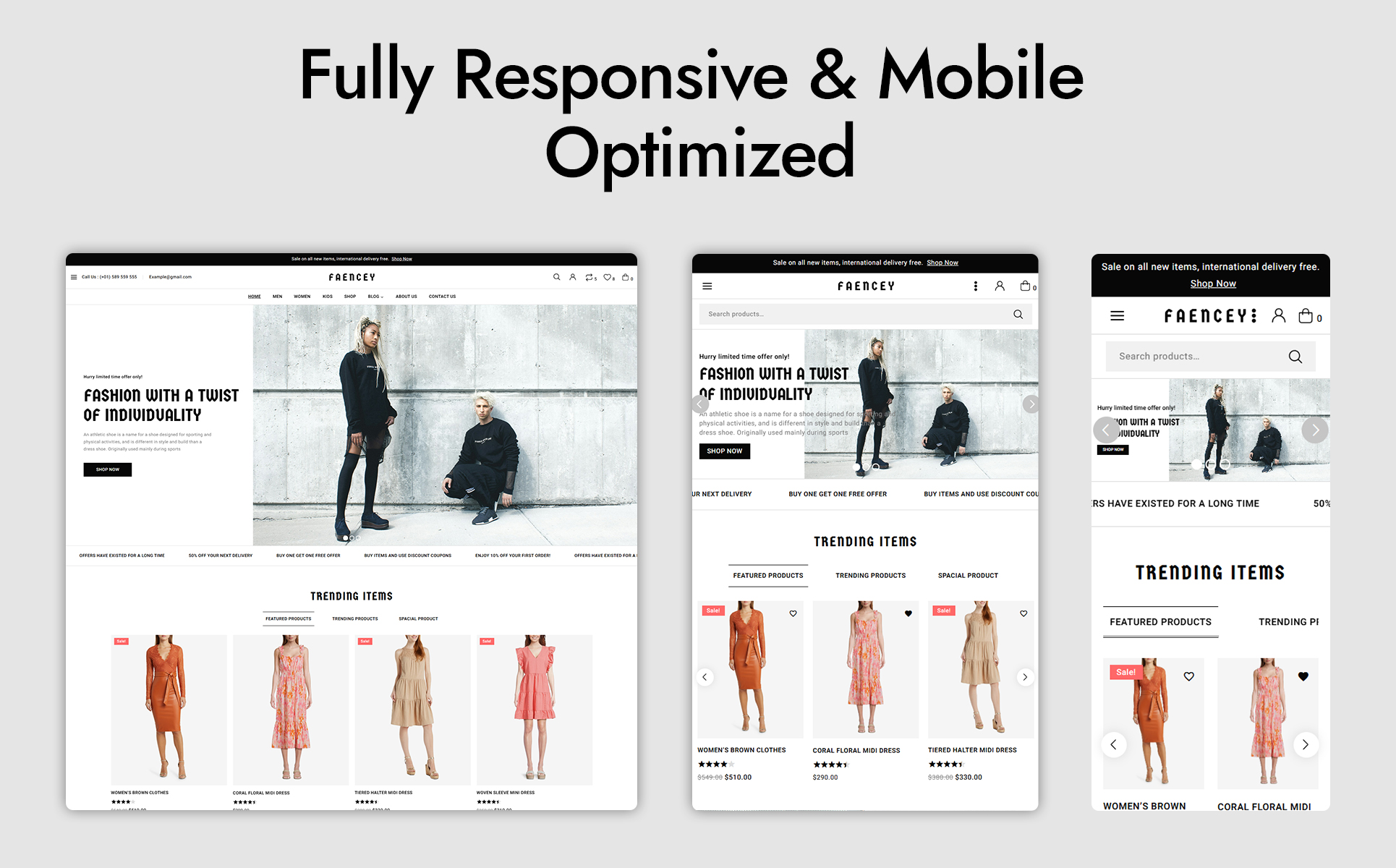 Faencey: Apparel & Fashion Shop The WooCommerce template represents a chic and contemporary eCommerce solution made for fashion businesses, accessory shops, and fashion boutiques. It guarantees a flawless browsing experience on all platforms because to its elegant design, completely responsive layout, and simple WooCommerce integration. Faencey Theme makes online shopping simple with its sophisticated filtering, fast product displays, safe checkout, and many payment methods. Fast-loading and SEO-optimized, it increases user engagement and exposure. This theme is ideal for building a stylish and successful fashion business since it supports several languages, has configurable layouts, and integrates social networking.