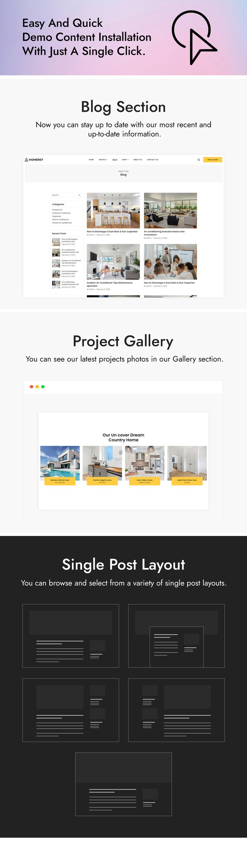 Realestate businesses looking to create a lasting online services, the Homerey theme is best choice. Its look like sleek, contemporary includes excellent photographs, online maps, and comprehensive listing data with all real facts. Easily add new listing features, highlight promotions, and create feature rich agent websites services with customizable layout. Homerey theme claims that it works perfectly with every devices because it is completely responsive layouts. Strong sorting and filtering tools enhance the user experience through rendering it easier for users and real customers to locate residences and workplaces. Increased leads and sales are the outcome of the Homerey theme’s integrated SEO optimization and compatibility with popular plugins, which guarantee outstanding visibility and faultless functioning.