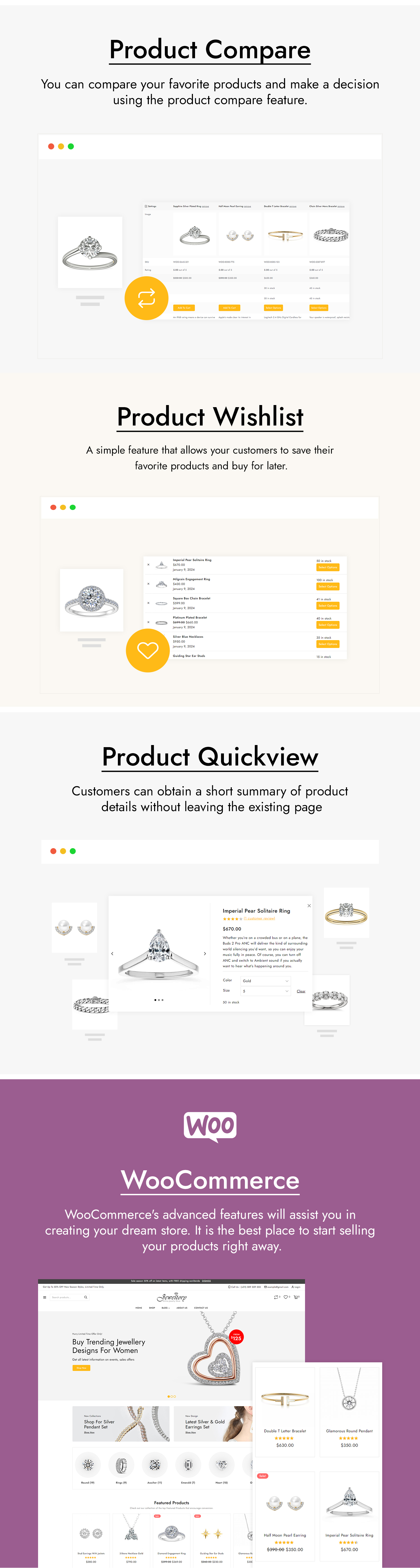 Your jewelry store will look brighter with the Jeweitory Jewelry and Diamond WooCommerce theme. Showcase elegance with seamless navigation and captivating galleries, featuring sparkling diamonds and precious gemstones. Easily alter configurations to give each part a polished sheen. Responsive design assures brightness across the board. It’s easier to select the perfect accessory with integrated filters. Enhance the customer experience by offering a seamless transaction and a user-friendly checkout process. Let Jeweitory act as a prism, reflecting the glitz and shine of every piece in your jewelry store.