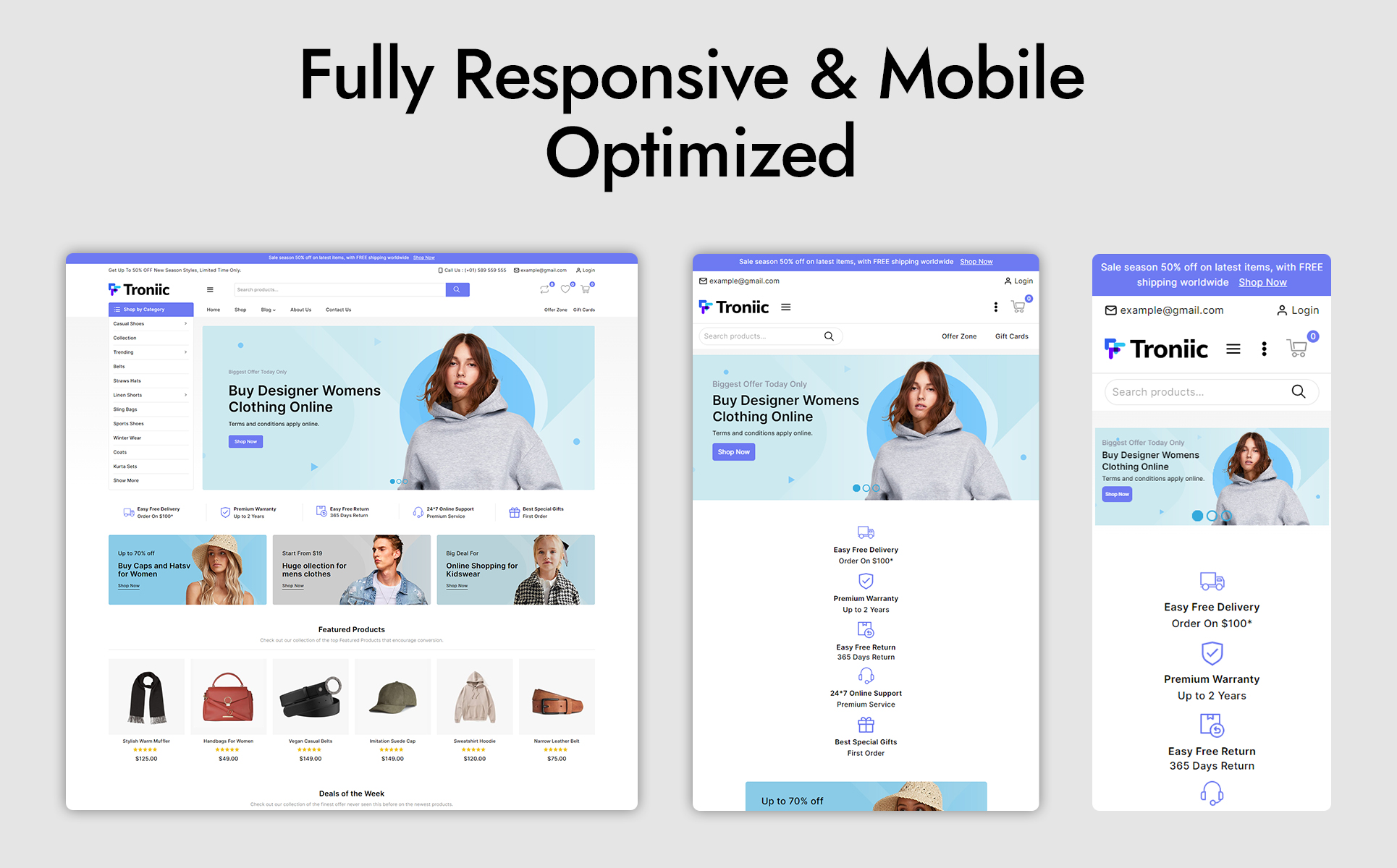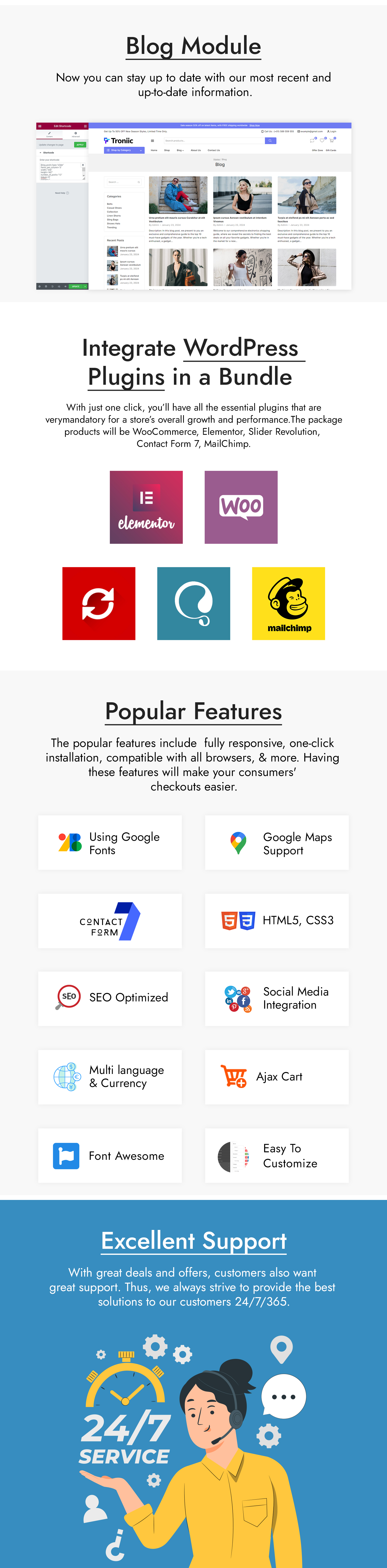 Use our Troniic WooCommerce theme to redefine online fashion boutiques. offer adaptable design and configurable layouts that seamlessly combine style and functionality. Make your shopping experience immersive by including everything from wardrobe essentials to trendy items. Integrated filters expedite search results, guaranteeing customers find their ideal match with ease. Checkout should be elevated for a smooth transaction. With each click, the Troniic theme transforms your fashion business into a work of art that exudes style and delightful browsing.
